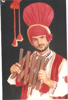 some of the other instruments pictured on the pages, such as the Khartaals, harmonium and tabla are often used during kirtan (sikh religious songs.) in the gurdwara (sikh temple). the dholki/dholak (similar to a dhol), sarangi and sitar may also be used, but at my gurdwara i see the dholak, tablas, harmonium, and when they put our guru granth sahib (our holy book) away for the night, the sevadars (the volunteers and assorted temple workers) play the chimta in a procession. (if u havnt guessed by now i'm sikh. :) i'm also a mix of punjabi indian (north indian, where all this comes from), mongolian, and european. my grandad's mum was from india and married a western guy, and we gt mixed from there. i hwever try t preserve my culture because i see it and other cultures losing their morals to quickly, which is sumthing i often comlain about in my blog.